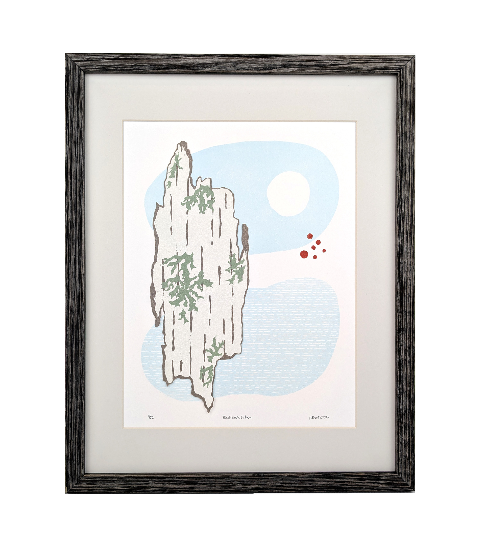 Birch Bark Lichen | 9"x12" Linocut, Ink on Paper
