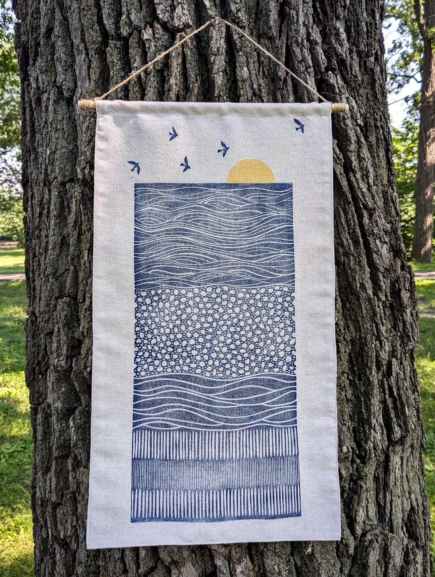 Fathoms | 13"x24" Linocut, Ink on Linen