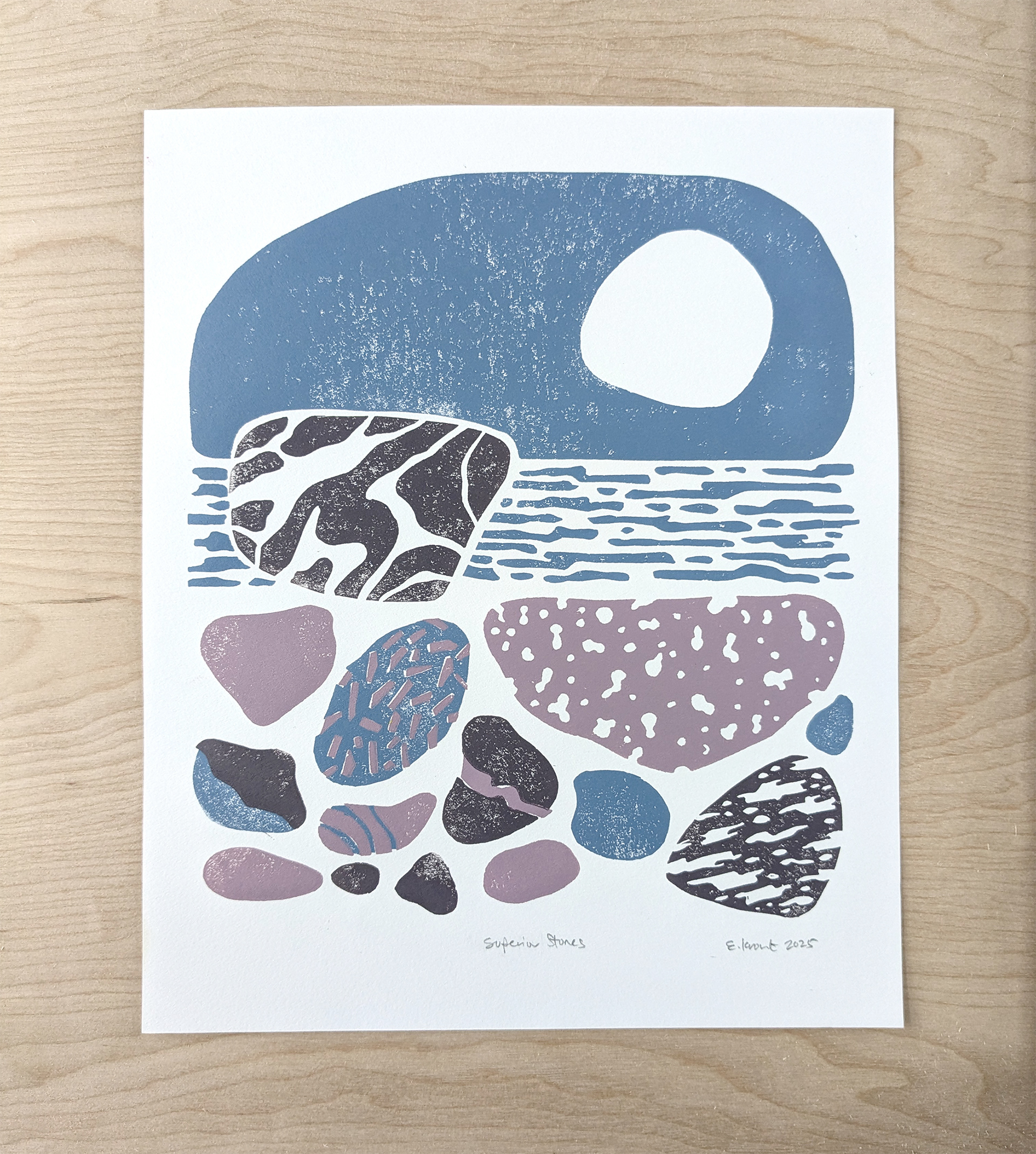 Superior Stones | 9"x12" Linocut, Ink on Paper